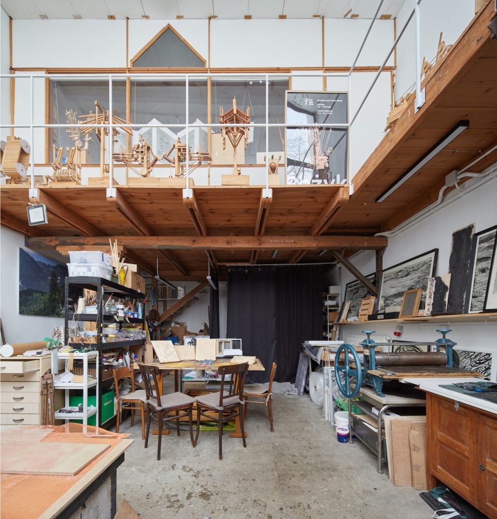 To miejsce: przesiadywania, myślenia, mierzenia, dopasowywania, zmieniania, montowania, pisania, opisywania, zbierania, kolekcjonowania, magazynowania, spotykania, przygotowywania, zamieniania rysunków w konstrukcje, konstrukcji w rzeźby, spawania, klejenia, wycinania, piłowania, rysowania, szkicowania, odmierzania, zastanawiania się, malowania, zamalowywania, czyszczenia, przybijania, zapisywania, notowania, odnajdowania, przechowywania, pakowania, odpakowywania, wnoszenia, ustawiania, wynoszenia, przenoszenia, przesuwania, przemieszczania, docinania, wkręcania, odkręcania, zastanawiania i rozmawiania ze sobą, z rzeźbami i z gośćmi.